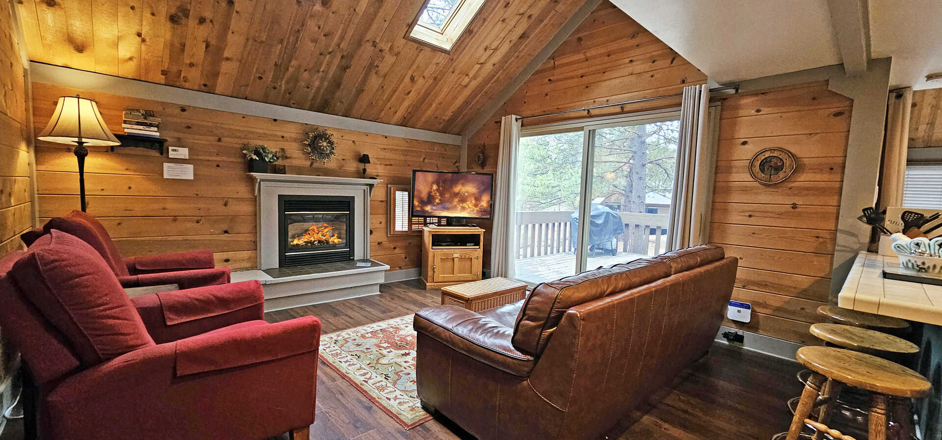 The cabin is situated in a peaceful area where you can enjoy the quiet serenity of nature while still having all the modern conveniences you need to enjoy your time in Sunriver. The interior is cozy and inviting, with warm wood accents, a gas fireplace and complimentary high speed internet. Additionally, this home is a dog-friendly accommodation, which means you can bring your furry friend along on your vacation.